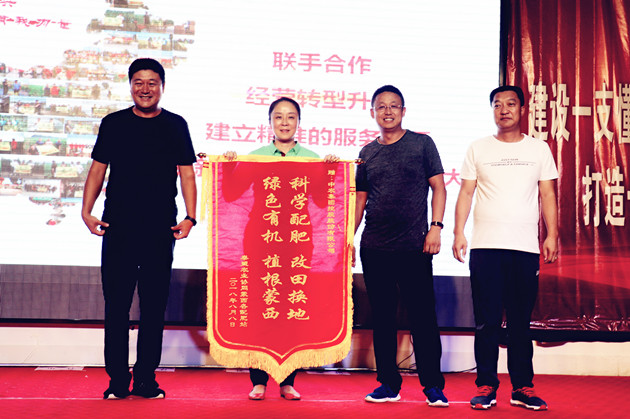 大連市供銷社農(nóng)家樂公司總經(jīng)理郝守亮、鄂爾多斯現(xiàn)代農(nóng)業(yè)服務(wù)中心站長賈建軍和農(nóng)技專家李立在會上講述了與中農(nóng)控股合作以來所做的工作及取得的成果。賈建軍與李立還向中農(nóng)控股送上了一面錦旗,以感謝中農(nóng)控股對自身發(fā)展的扶持和幫助,以及對當?shù)剞r(nóng)業(yè)發(fā)展所做的貢獻。
