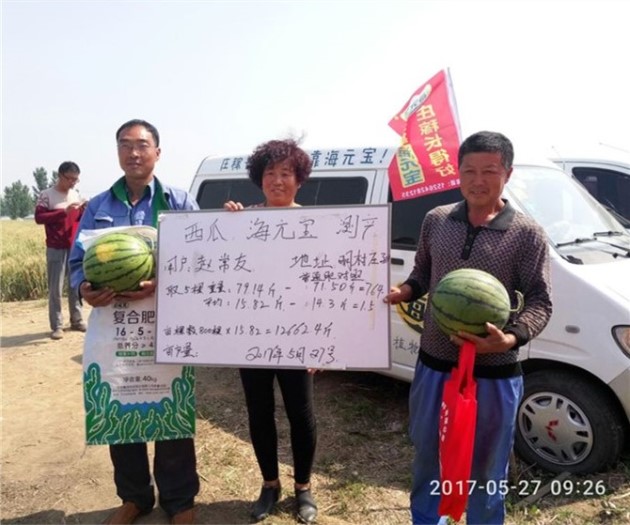 5月底,正是山東平度西瓜即將成熟的時(shí)候,海元寶西瓜測(cè)產(chǎn)觀摩會(huì)安排在王村鎮(zhèn)莊子村趙大哥的西瓜大棚里舉行。經(jīng)過(guò)嚴(yán)格公正的測(cè)產(chǎn),結(jié)果顯示,海元寶讓瓜農(nóng)每畝增收1945.6元!
