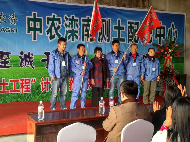 ??? 儀式開(kāi)始之前,土壤檢測(cè)實(shí)驗(yàn)室里化驗(yàn)員向農(nóng)民詳細(xì)介紹測(cè)土的流程和方法,智能配肥機(jī)前工作人員向農(nóng)民演示生產(chǎn)過(guò)程,原料和成品展示廳里經(jīng)銷(xiāo)商向農(nóng)民介紹著各種原料及中微量元素肥料。