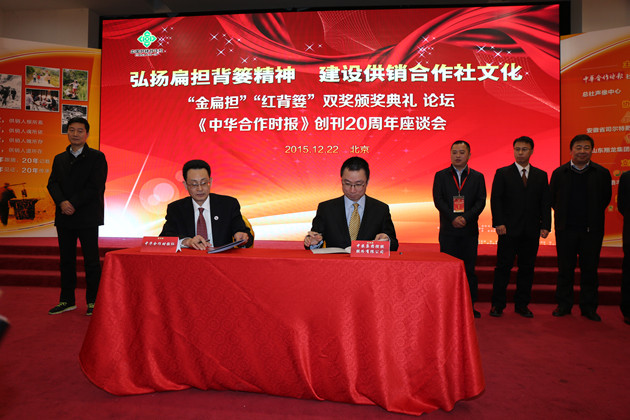 ? ? 12月22日,以“弘揚扁擔(dān)背簍精神、建設(shè)供銷合作社文化”為主題的供銷合作社文化建設(shè)論壇暨《中華合作時報》創(chuàng)刊20周年座談會在京舉行。會議期間,中農(nóng)控股總經(jīng)理羅德強與中華合作時報社社長、總編輯查迎新現(xiàn)場簽訂戰(zhàn)略合作協(xié)議。