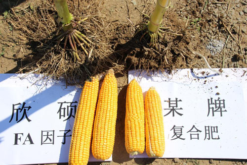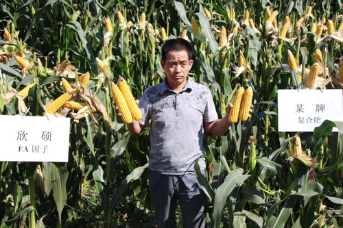 ? ? 安國玉現場介紹,今年遇到了干旱天氣,非常擔心示范田玉米的產量,在新樂中農農化人員的精心指導下,加強田間管理,合理使用“欣碩”FA因子復合肥,玉米長勢很快就超過了其他地塊。安國玉還給大家算了一筆自己的經濟賬,使用“欣碩”FA因子肥料雖然比普通肥料貴一些,但是玉米高產增收了,就把肥料上多花的錢全都掙回來了,大品牌好肥料用著就是放心!遇上干旱心里也不慌了。