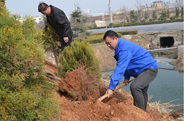 ? ? 園藝師向大家講解了種植青松的有關(guān)要求后,大家按照指定區(qū)域快速行動(dòng)。辦公室、人力資源、財(cái)務(wù)部等以科室為單位開展植樹競(jìng)賽活動(dòng),扛樹苗、挖坑、培土、澆水……植樹的每一道工序,大家積極參與,認(rèn)真對(duì)待。