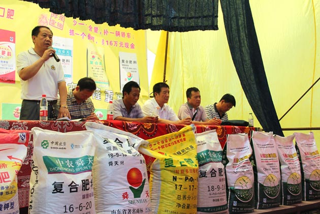 ??? 會議期間,大家實地參觀了山西運城種植大戶馮恩波的蘋果示范園。只見綠油油一片果樹,碩果累累,大而飽滿,令人喜不勝收。據馮恩波介紹,這片果園主要施用中農舜天的脲醛硝硫基復合肥,該種肥料的增產效果極為明顯,預計畝產可達萬斤,而且極大提高了一級出果率。針對該種肥料增產增收的高效特點,中農舜天的農化人員又做了進一步的解釋和說明,令參觀人員對中農舜天新型肥料的種類、特點和銷售模式有了更為深刻的認識,對企業有了更加全面的了解。