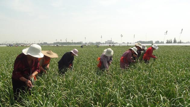 ? ? 蒼山縣是我國有名的大蒜之鄉。當下,正是蒜苔采收的季節,只見示范田里生長的蒜苔顏色濃綠、高大粗壯。當地農民韓敬茂高興說:“我的苔子(蒜苔)長得就是比別家的強,色綠、粗長、沒有黃斑,往年用其他肥料一畝能產一千二三百斤,今年開始用五洲豐藍色海洋經典肥料,比往年能多出三四百斤。”