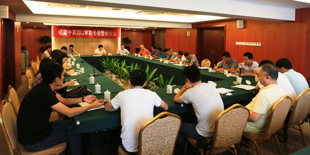 ? ? ? ? ?9月15日,福建中農農業生產資料有限公司(以下簡稱“福建中農”)在福州召開2012年秋冬業務經營研討會,福建中農各部門、各配送中心負責人及部分業務人員參加會議。會議由福建中農總經理黃明光主持。? ? ? ? ?會議對福建中農階段性經營工作進行了全面總結,對當前面臨的新形勢、新問題進行了深入分析,對去庫存工作的執行情況進行了重點回顧和詳盡評價。? ? ? ? ?會議要求,在當前較為低迷的市場環境下,全體人員務必做到時刻關注市場,分析市場,在堅持“去庫存、收欠款、保渠道、抓團隊、找機遇”的經營原則下,在保證渠道暢通的前提下,做到不斷檔、不壓庫,有計劃、有步驟的開展各項經營工作。同時會議強調,在秋冬種植的小旺季內,公司將集中人力、物力,持續加大差異化產品的銷售力度,加大多酶金尿素、大顆粒尿素等化肥產品的推廣力度,為實現年度各項經營指標打好良好基礎。