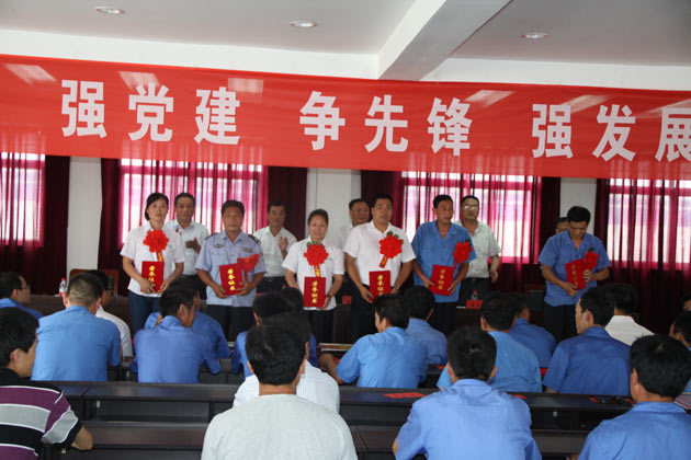 ? ? 在中國共產黨成立91周年之際,6月30日,中農控股旗下中農舜天生態肥業有限公司(以下簡稱“中農舜天”)在公司科技園舉行了“七一”表彰大會,對創新爭優過程中做出突出成績的營銷支部和8 名優秀黨員進行表彰。中農舜天黨委書記楊鳳柱、各黨支部書記及全體黨員共40余人參加本次會議。? ? 表彰會上,楊鳳柱為獲得表彰的先進集體及先進個人發放榮譽證書,并在會上作重要發言。他結合公司當前各項工作,充分肯定了全體黨員的先鋒模范帶頭作用,同時對新時期的黨員工作提出了新的要求。談到中農舜天發展時他表示,中農舜天的發展離不開黨的方針政策,離不開黨員干部及全體員工的共同努力。公司的黨員同志不論身處何職,都繼承和發揚黨的不怕困難,團結進取的優良傳統,在自己的工作崗位上兢兢業業,盡職盡責,為公司各項任務的圓滿完成和當前的快速發展做出貢獻。