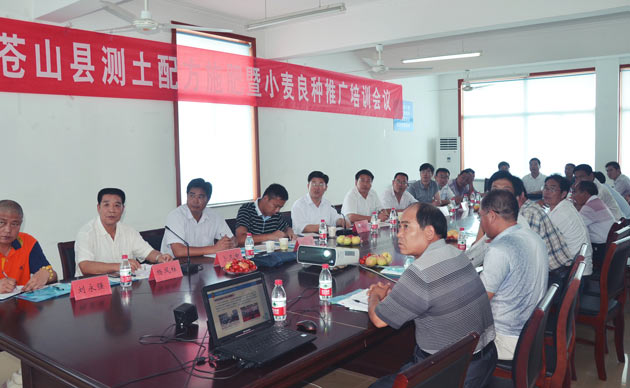 8月10日上午,由蒼山縣農(nóng)業(yè)局聯(lián)合中農(nóng)控股旗下企業(yè)——中農(nóng)舜天生態(tài)肥業(yè)有限公司(簡稱中農(nóng)舜天)組織召開了蒼山縣測土配方施肥暨小麥良種推廣工作會。會議由中農(nóng)舜天常務(wù)副總經(jīng)理楊鳳柱主持,中農(nóng)舜天總經(jīng)理李日升、山東網(wǎng)聯(lián)肥業(yè)科技有限公司質(zhì)檢部部長劉寶、蒼山縣農(nóng)業(yè)局局長邢安飛、副局長高洪峰、辦公室主任蘇瑞臣、土肥站站長卜凡中、種子公司樊吉嶺,農(nóng)業(yè)局各分管鄉(xiāng)鎮(zhèn)土肥站站長共計40余人參加了會議。