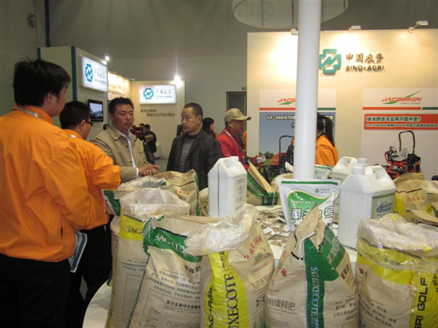 ??? 3月18日-20日,2011年北京高爾夫博覽會(簡稱“高博會”)在北京國家會議中心召開。本屆高博會是迄今為止規模最大的一屆,開幕式上更是吸引了100多名記者、20多家媒體的關注。前國家領導人胡啟立以及國家體育總局肖天副局長等領導也蒞臨展會。??? 中農控股旗下子公司——中農高夫生物科技(北京)有限公司(簡稱“中農高夫”)在本屆展會上備受矚目。中農高夫向行業客戶大力推出世界知名剪草機品牌JACOBSEN全線最新產品,以及公司歷時1年多、潛心研發出的系列園林園藝、運動草坪養護系列新產品,包括全效葉面肥、殺蟲劑、除草劑等,引來了眾多新老客戶的青睞。據悉,中農高夫在本屆高博會到訪客戶達500余人,其中重點洽談客戶100余家。??? 展會中JACOBSEN公司亞太地區總裁ALLEN和公司技術顧問GELIN為中農高夫參展提供了全面的銷售、技術支持,提升了“中國農資”以及“中農高夫”品牌的知名度和影響力,為下一步中農高夫國內外市場開拓奠定了良好的基礎。