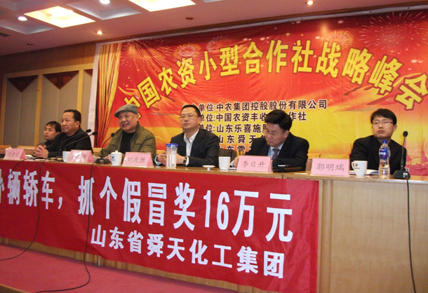 ??? 2011年3月17日,中國農資小型合作社戰略峰會在河南駐馬店召開。本次峰會由中農控股主辦,中國農資豐收園合作社承辦,山東舜天化工集團有限公司、山東樂喜施肥業有限公司、山東雪花集團等三家大型生產企業協辦。會上,河南農業大學博士生導師李有田作了題為《平衡施肥、科學種田》的報告、中農集團控股股份有限公司新產品及農化服務部經理劉慶勝作了題為《順勢而為如何融入中農小型合作社》的報告,均得到了與會人員的普遍關注。此外,山東舜天集團總經理李日新、山東樂喜施肥業總經理郭明瑞、山東邦稼集團總經理劉永強也分別作了主題發言。眾多參會的經銷商會后都紛紛表示,參加此次峰會很受啟發,希望能盡快加入中國農資小型合作社體系。??? 中國農資小型合作社戰略峰會是中農控股在中國農資集團“農資下鄉”行動的總體部署下,為了進一步增強中國農資集團“服務三農”的綜合本領,履行大型涉農企業的社會責任,構建安全、高效的農資流通渠道,保障國家糧食安全所作的有益嘗試。同時,峰會的召開也將有助于加強中農控股與國內大型復合肥、緩控釋肥及有機、無機復混肥生產企業的業務合作關系。