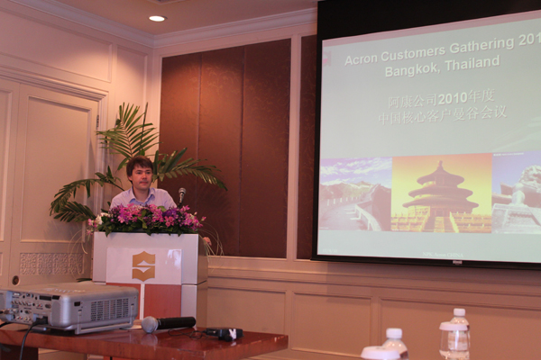 ??? 11月4日至6日,中農(nóng)控股股份有限公司磷復肥部經(jīng)理王秦燕一行參加了俄羅斯阿康股份有限公司在泰國曼谷召開的“核心客戶市場研討會”。??? 本次會議是在國際化肥市場行情持續(xù)上漲的背景下召開的。會議期間,阿康公司對全球市場過去一年的工作情況進行了總結,并對明年國際化肥市場的發(fā)展趨勢進行了展望。阿康公司的主要客戶代表參加了此次研討會,會議取得圓滿成功。??? 在我公司與阿康公司洽談中,王秦燕經(jīng)理表達了公司期望與阿康公司加強多方面合作的愿望,阿康公司也表示加強業(yè)務合作有利于雙方的長遠利益。雙方就加強重點合作業(yè)務方面交換了意見。??? 阿康公司是俄羅斯最大的化肥生產(chǎn)企業(yè),去年的化肥總產(chǎn)量達到450萬噸。無論是在俄羅斯農(nóng)化市場,還是在世界農(nóng)化市場,阿康公司都占有較高的市場地位并享有良好的信譽。??? 圖為阿康公司2010年度中國核心客戶會議報告現(xiàn)場: